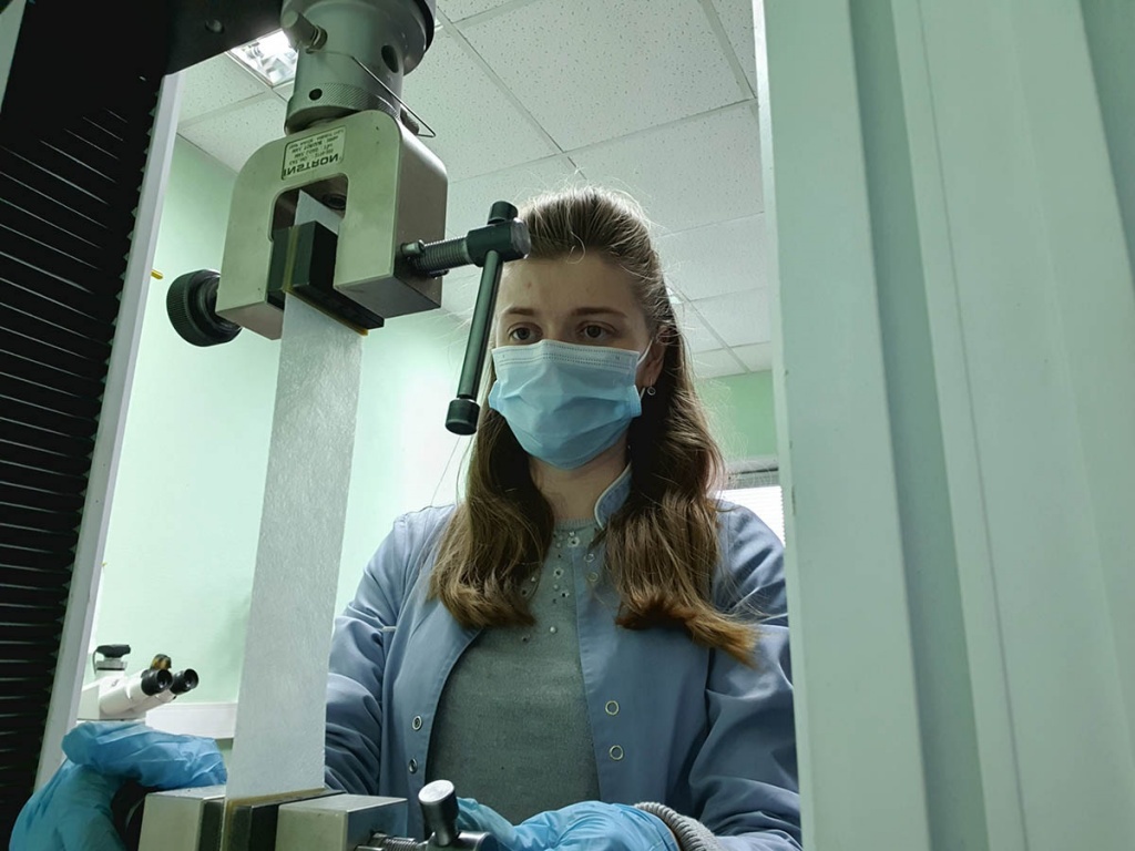 В качестве основы для черепицы используется стеклохолст, а для подкладочного ковра также и полиэфирное полотно. Для этих материалов контролируется масса на единицу поверхности и прочность на разрыв. Разрывная сила при растяжении в продольном и поперечном направлениях — основной параметр, подтверждающий качество стеклохолста и полиэфирного полотна. От их качества напрямую зависит прочность готовой битумной черепицы и подкладочных ковров. Этот показатель проверяется на разрывной машине Instron