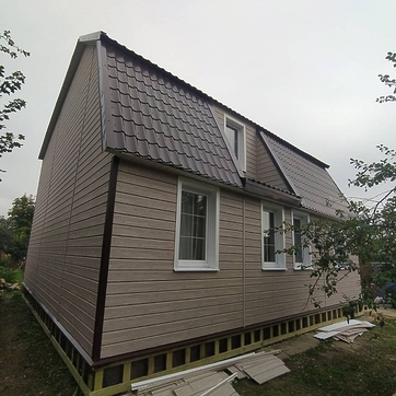 Отделка из сайдинга под ореховое дерево — отличный способ сделать ваш дом неотличимым от брусового. В панелях серии ЛЮКС (LUX) аккуратно прорисована каждая деталь волокнистой структуры древесины, поэтому сходство будет полным не только издалека, но и на небольшом расстоянии.